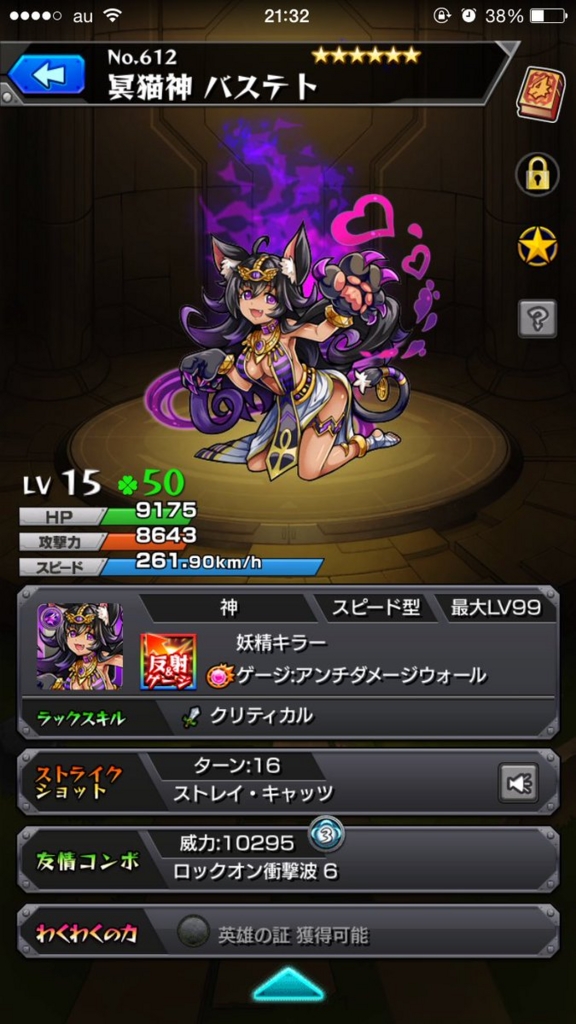 と、いうことで最近バステトさんをひたすらに運極目指し中。